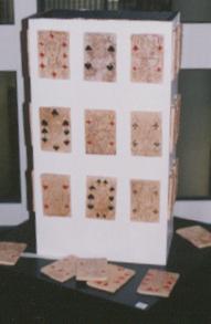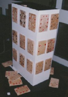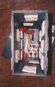 Meine Installationen sind Realisierungen intuitiver innerer Bilder zu bestimmten gesellschaftlich relevanten Themen. Ohne an die Grenzen irgendeines Materials gebunden zu sein und gleichzeitig mit dem Vorteil der Dreidimensionalität lassen sich besonders gut Widersprüche, Konflikte und Polaritäten sichtbar machen. Auch der Entstehungsprozeß mit Tätigkeiten wie sammeln, bauen, schlagen, hämmern, formen, brennen ist bei den Installationen von Bedeutung. | |