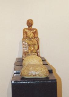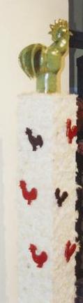 "Totem", Installation,Holz,Keramik,Federn, 2000. | |