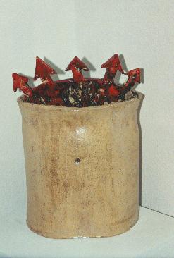 Die Transformation der erdigen Ausgangsmasse in expressive Formen und ihre Farbgestaltung durch Glasurbrände ermöglichen es, eigenen Ideen und Empfindungen dauerhafte Gestalt zu verleihen. Durch den kreativen Prozeß werden die reichhaltigen verborgenen inneren Welten zutage gefördert und sichtbar gemacht. Inder Dreidimensionalität zeigt sich der Gedanke handfest, greifbar und ist von allen Seiten und aus verschiedenen Perspektiven zugänglich. | ||||||||||||||||||||||||||||||||||||||||||||||||||||||||||||||||||||||||||||||||||||||