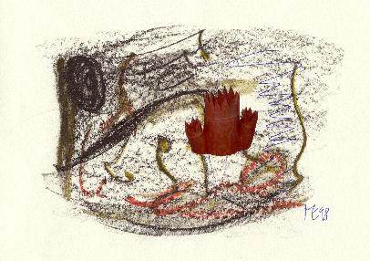 Meine Zeichnungen entstehen spontan, aus Lust an der Tätigkeit des Zeichnens. Sie sind nicht an eine Werkstatt oder ans Atelier gebunden. Ich zeichne unterwegs, in der Natur, vor und nach Begegnungen mit Menschen und Phänomenen. Die Zeichnungen entstehen, wenn es um Erscheinungen und Empfindungen geht, die nicht mit Worten oder Denken zu erfassen sind. Hier ergreife ich den Zeichenstift und lasse intuitiv emotionale und geistige Bewußtseinesbereiche zum Ausdruck kommen. BeimBetrachten der Zeichnungen ist es sehr hilfreich, aber nicht notwendig, die Sprache der Formen, Linien, Symbole und Mystik zu verstehen. | |||||||||||||||||||||||||||||||||||||||||||||||||||||||||||||||||||||||||||||||||||||||||||||||